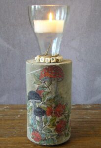 Flaschen-Windlicht „Schön hier“ mit einseitigem Pilzmotiv