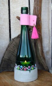 Flaschen-Windlicht „Romance“ in Perlenkettenoptik